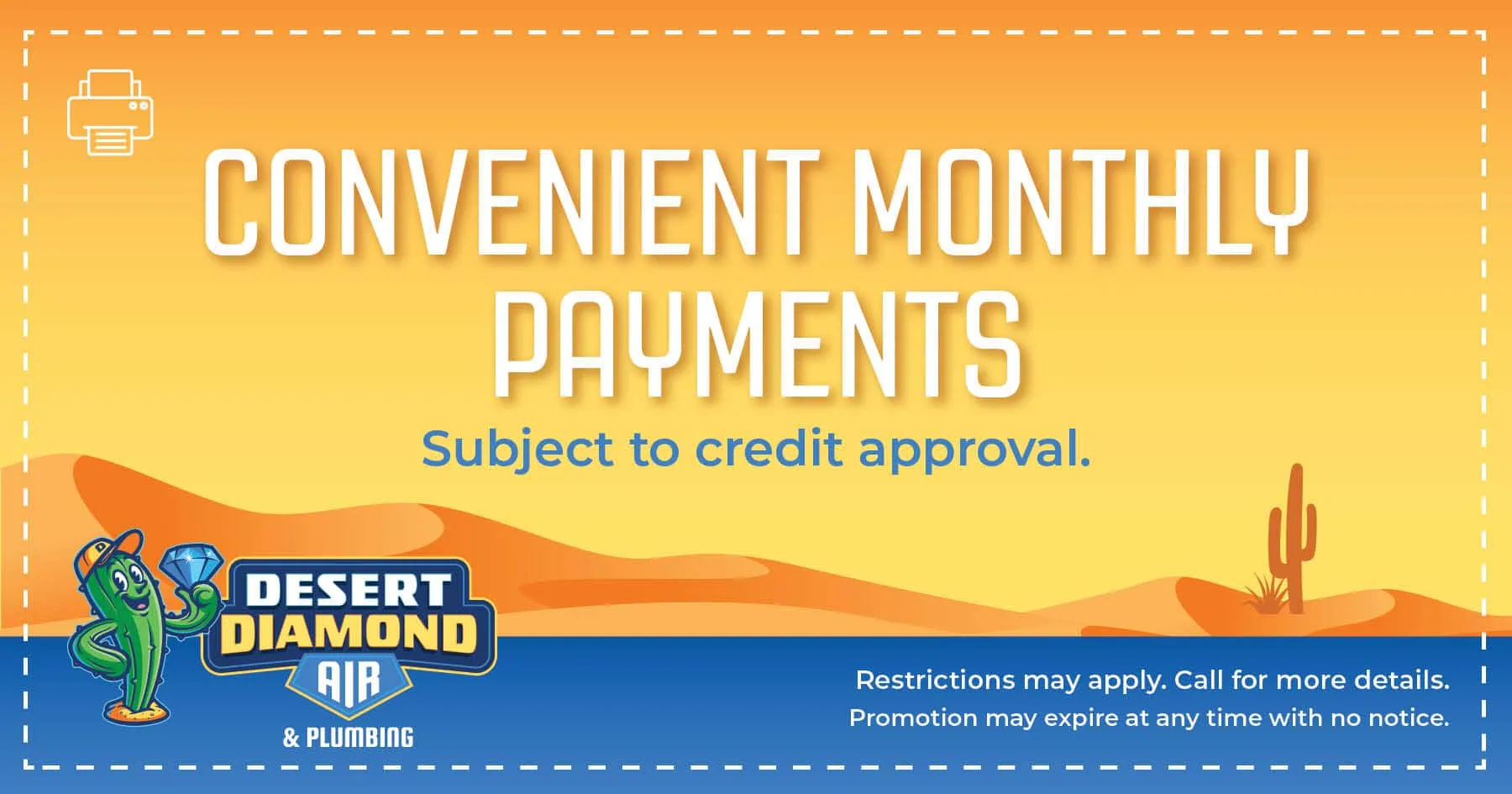 Coupon: CONVENIENT MONTHLY PAYMENTS. Subject to credit approval. Restrictions may apply. Call for more details. Promotion may expire at any time with no notice.